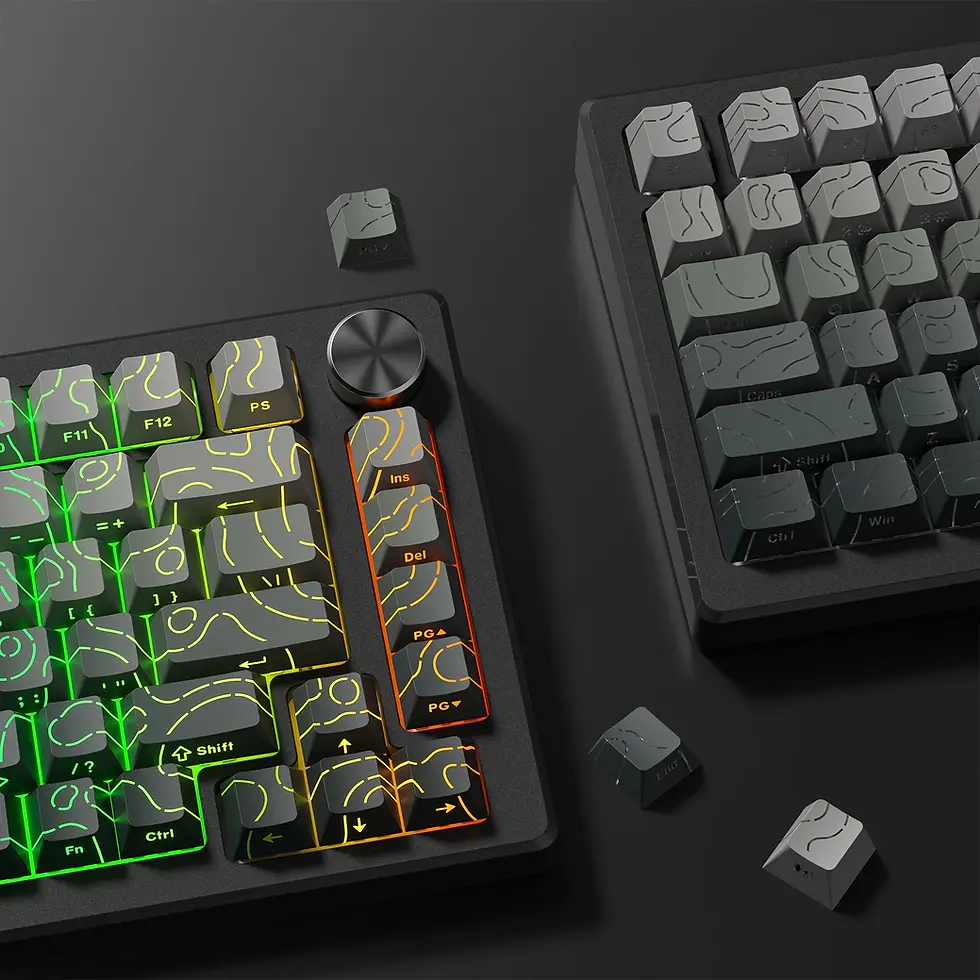98 Keys Side-lit Shine Through Keycaps Grey Topographic Cherry Profile PBT Doubl