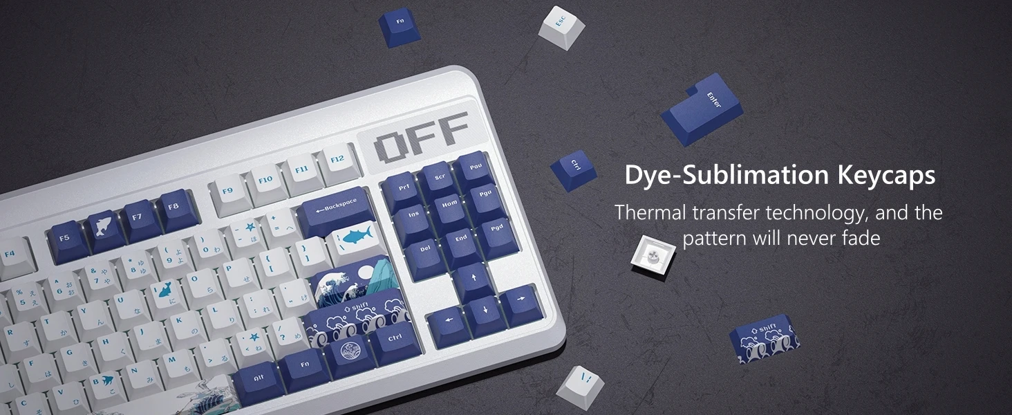 【White Japanese Kanagawa Keycaps】In the bustling modern city, Womier PBT key caps creates a special aesthetic feeling with anime association. The keycaps cover adopts advanced five-sided dye-sub process. With rich supplementary keys, it is very handy when you are on the DIY keyboard.