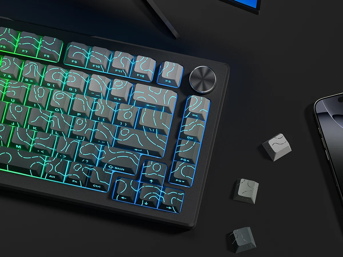 98 Keys Side-lit Shine Through Keycaps Grey Topographic Cherry Profile PBT Doubl