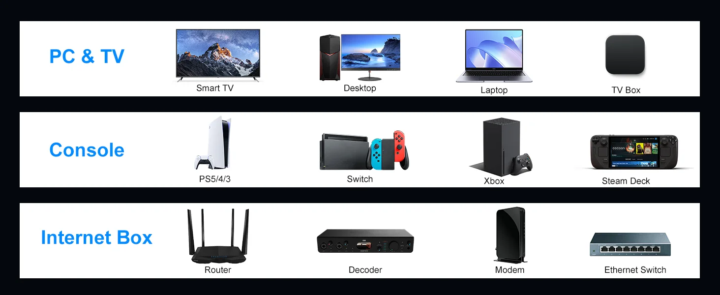 The Cat6 network cable is backward compatible with Cat 5e and Cat 5 ethernet cable. RJ45 connectors provide universal connectivity for Lan network components such as computers, laptops and more