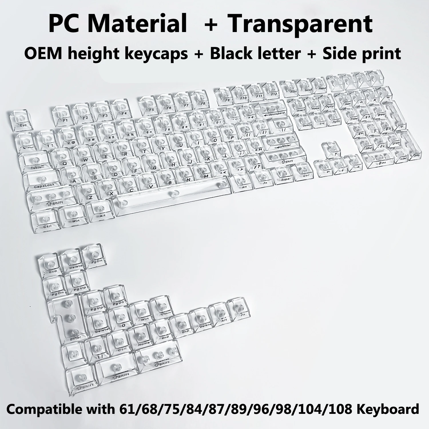 Full Sets Transparent Keycaps for Mechanical Keyboard Front/Side/None Print RGB Backlit Full/Misty Transparent Keycap 130+ Key